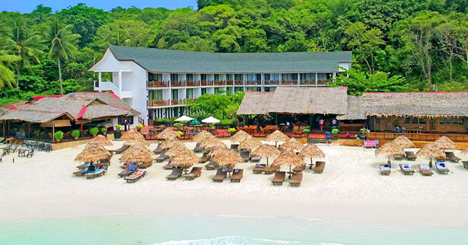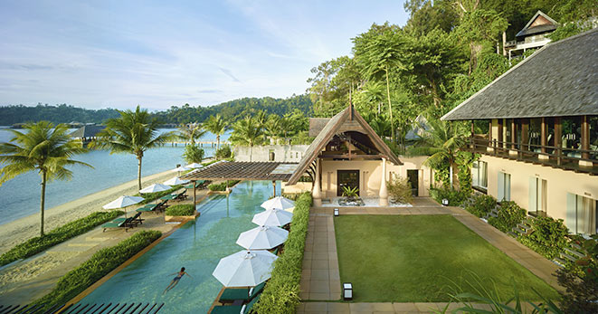 Dispone di 125 camere di varie tipologie e suite, tutte le sistemazioni hanno letti oversize, più ampi e confortevoli della media. Due i ristoranti: il "Mare Nero" ristorante elegante con vista sul mare propone specialità di cucina italiana, l'Asean offre piatti di cucina malese ed internazionale accompagnati da una ricca carta di vini. A completare l'offerta il The Cove, bar sulla spiaggia ideale per un cocktail al tramonto. Inoltre a disposizione degli ospiti piscina, Spa, palestra e intorno una natura entusiasmante. L'isola è un santuario delle tartarughe, che si possono facilmente ammirare facendo snorkeling.