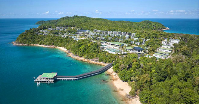 Sapiente uso del legno nelle costruzioni che sembrano fondersi, quasi scomparire nella foresta, come se davvero fosse stata la natura a disegnare e concepire il tutto, perfino lo spazio da riservare a ville e suite sperdute nel giardino, a rispettosa distanza l'una dall'altra, mentre altre ville sono “overwater”, splendide palafitte sul mare. Una suite, la più esclusiva, è intitolata a Luciano Pavarotti, che venne qui e s'innamorò di Pangkor e del Laut.