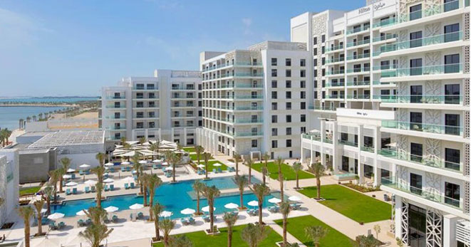 Le camere sono dotate di ogni comfort, accoglienti e arredate con gusto, alcune con vista sul mare. Tre i ristoranti: il "Capila Pool Bar and Grill" a bordo piscina è la soluzione ideale per un pasto leggero e veloce o per un cocktail al tramonto, il "Graphos Social Kitchen" propone invece cucina gourmet con sapori classici rivisitati in chiave moderna. Infine il celeberrimo Café del Mar, un brand conosciuto in tutto il mondo, ha scelto l'Hilton a Yas Island: un ambiente casual e raffinato, menù esclusivo, intrattenimento piacevole riservato ai maggiori di 21 anni. A disposizione degli ospiti piscina, centro fitness, Spa per massaggi e trattamenti benessere, Kids Club.