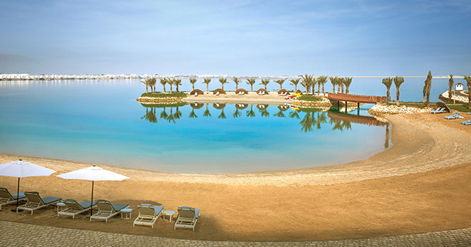 A pochi minuti dalla capitale ma lontano dal mondo, su uno splendido tratto di costa e direttamente affacciato sul mare, sorge il prestigioso The Ritz-Carlton Bahrain. L'attenzione ai dettagli è il marchio di fabbrica della catena: campo da squash climatizzato, campi da tennis sulla spiaggia per giocare in notturna, lenzuola a 600 fili con sottilissime trame di tessuto in tutte le 260 camere, a prescindere dalla tipologia.