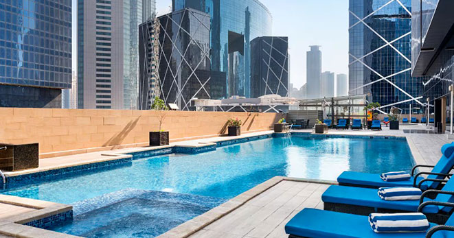Moderno ed elegante, il Pullman Doha West Bay è ben posizionato in uno dei quartieri più apprezzati della capitale qatariota a circa venti minuti dall'aeroporto e vicino a molte delle principali attrazioni turistiche come il Souq Waqif, il Museo Nazionale del Qatar e la Corniche. Quattro i ristoranti nei quali è possibile assaporare ricette da tutto il mondo, mentre il bar The Score è perfetto per un pasto più veloce o per seguire i principali eventi sportivi internazionali. A disposizione degli ospiti anche piscina, centro fitness e la Pullman Spa per massaggi e trattamenti rilassanti.