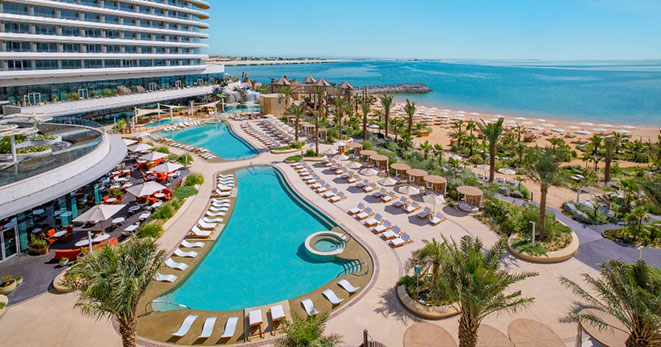 Inoltre quattordici ville con arredi arabi, biancheria da letto raffinata, lussuosi bagni in marmo, tutte affacciate sulla spiaggia in un insieme che ricorda i palazzi degli sceicchi, fra labirinti di cortili, piscine, fontane. Un mondo a parte.