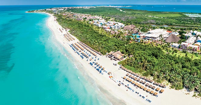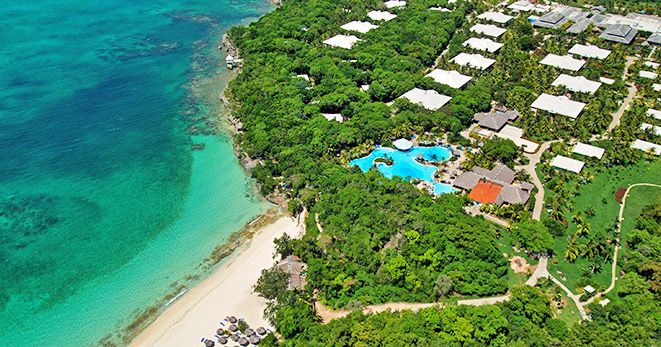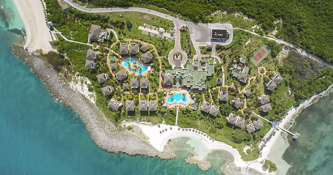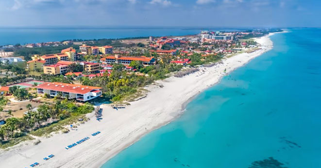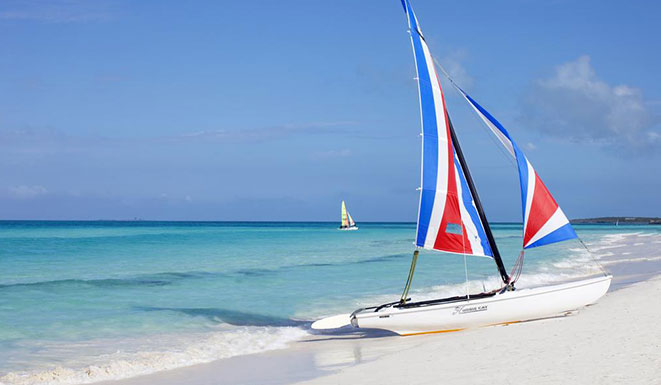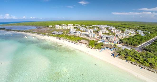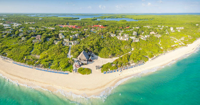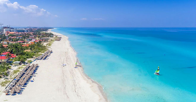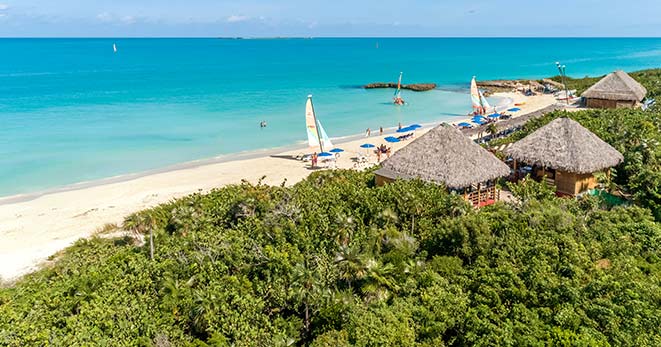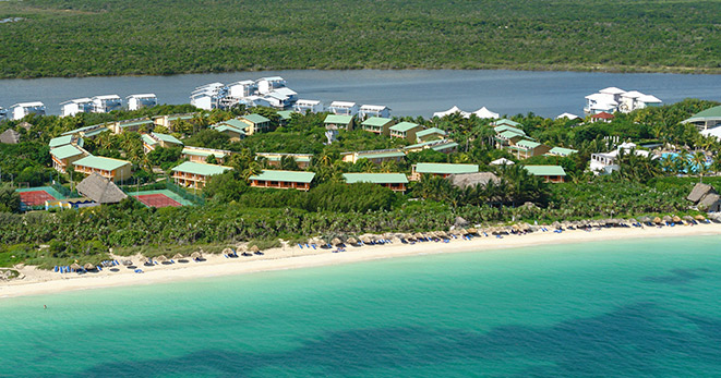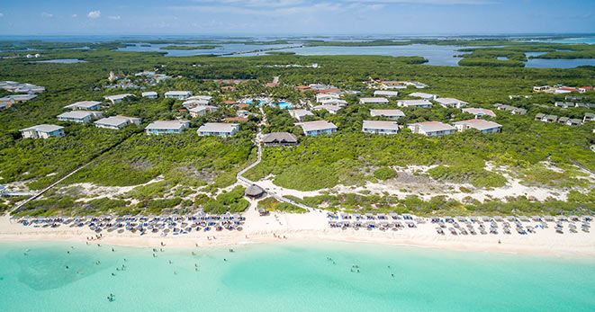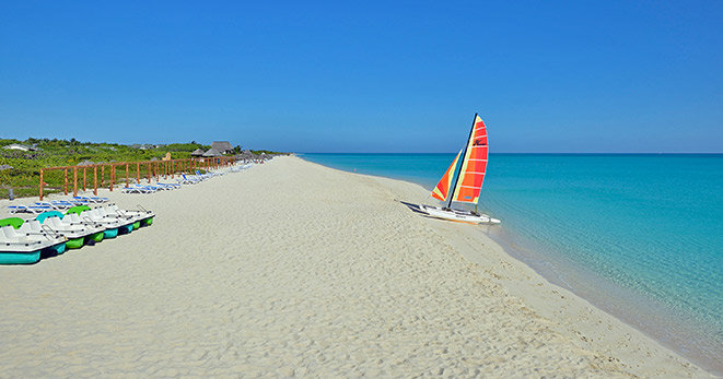 La spiaggia è di fatto privata e riservata ai soli clienti del Resort: una distesa di sabbia candida di 10 chilometri, è considerata una delle più belle dell'Isola.