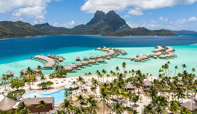 All'ombra del Monte Otemanu, circondato dalle acque cristalline della laguna di Bora Bora, una delle più belle al mondo. Un vero e proprio angolo di paradiso che ospita il The Westin Bora Bora, un resort tipicamente polinesiano con Overwater Bungalows, spaziosi e moderni, direttamente sull'acqua. Tre i ristoranti: Tipanier serve piatti di cucina francese in un ambiente elegante, Maere propone menù internazionale con una vista spettacolare sulla laguna, Varavara offre carne e pesce cotti alla brace in un ambiente rilassato. Per aperitivi e drink i bar Honu Tiki, Te Ava e 'O'A. A disposizione degli ospiti piscina, palestra e Spa.