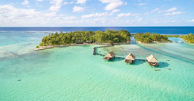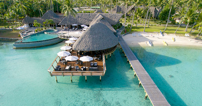 Anche perché non ce ne sono altri che utilizzano l’acqua del mare per la climatizzazione di tutti gli ambienti. È sul motu Piti Aau, “due cori” in tahitiano, ed è costituito esclusivamente da ville su palafitte con tetti in pandanus, come le tradizionali case polinesiane, e pontili a due livelli forniti di tavolo da pranzo e sedie a sdraio.