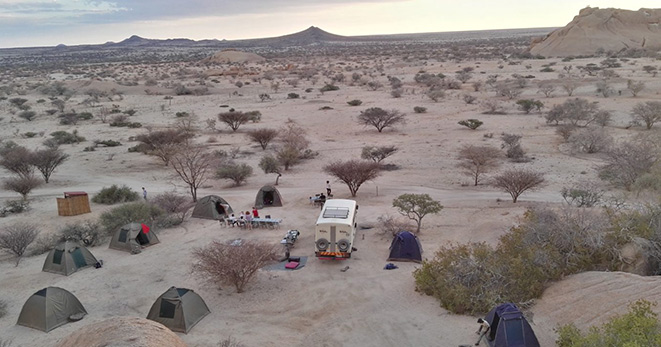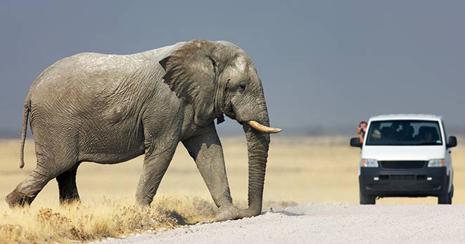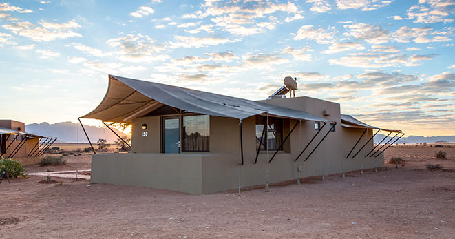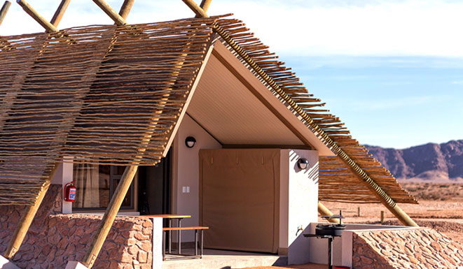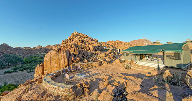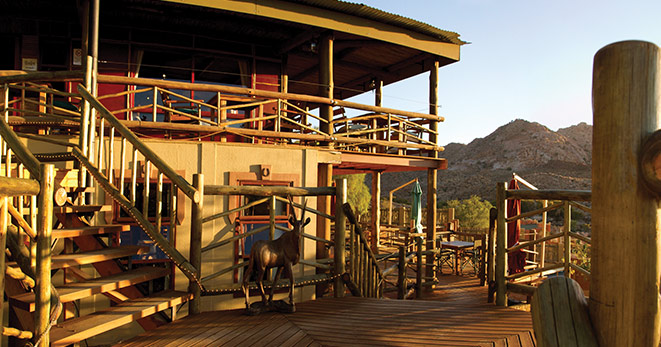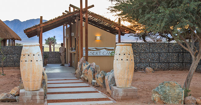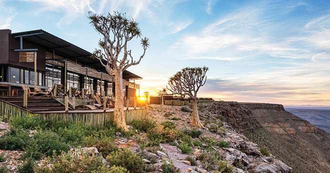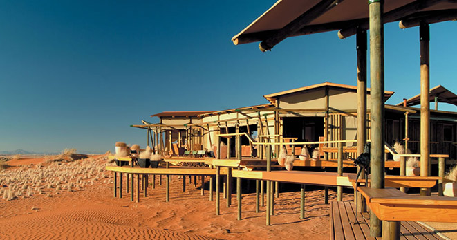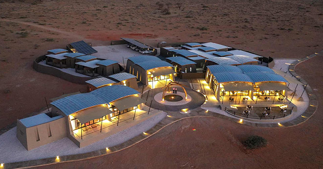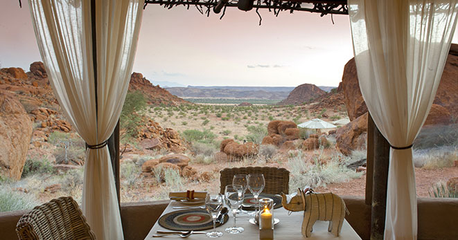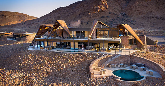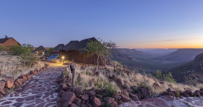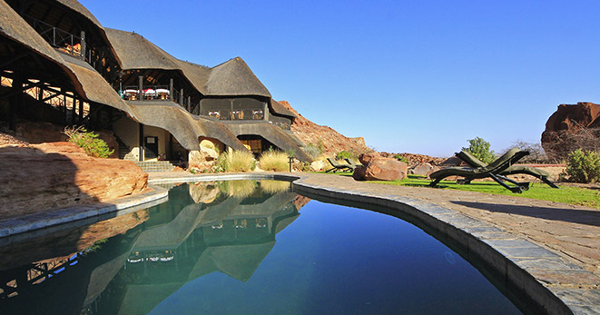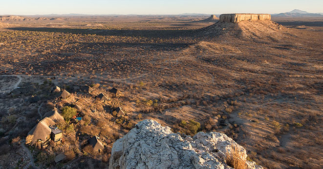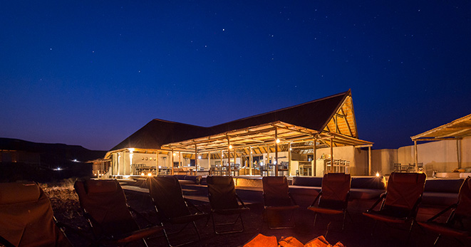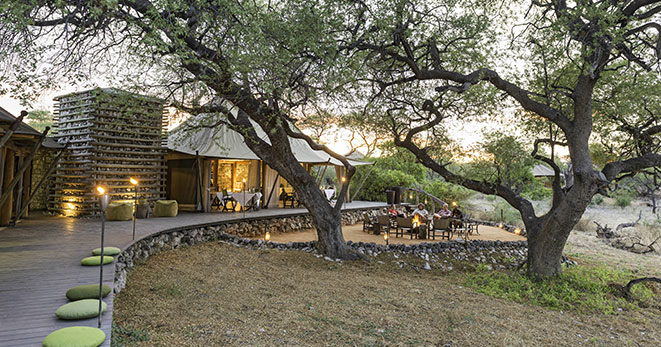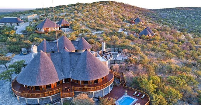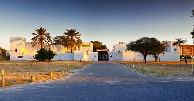 La riserva privata Onguma, al confine orientale del Parco Etosha, è habitat per antilopi cudù ed eland, zebre, orici, impala e predatori quali il leone, leopardo e ghepardo oltre a circa 300 specie di uccelli e, ultimo introdotto, Il rinoceronte nero. Nei mesi estivi Onguma è un paradiso per il bird-watcher con migliaia di uccelli migratori attratti dalle zone umide della riserva create dalle piogge. Tra i suoi 5 campi la punta di diamante è il The Fort. Questo lussuoso gioiello architettonico accoglie i clienti con massicce mura, pietra viva e alti torrioni, fondendo magistralmente feeling africano con raffinate intrusioni marocchine. Si affaccia sull’Etosha Pan ed uno specchio d’acqua attrazione per gli animali selvatici che possono essere ammirati dal salotto o dalla veranda della propria suite, immersi nel silenzio della savana. Le sue undici Bush Suite sono allineate lungo i lati del Forte principale e distanti tra loro circa 50 metri, a garantirne la privacy. La camera da letto e zona salotto si affacciano su di una veranda con piccola piscina dove rilassarsi lasciandosi assorbire da una vista meravigliosa e da straordinari tramonti. L’Honeymoon Suite include area soggiorno e romantici doccia e vasca esterni. La Sultan Suite, inserita al livello superiore della torre principale, ha una lussuosa camera da letto che si apre all’area soggiorno ed alla veranda privata, i servizi privati che includono doccia e vasca. Ciascuna Suite è dotata di spaziosi bagni con doccia interna ed esterna (solo interna nella Sultan Suite), frigo bar, TV satellitare, telefono, aria condizionata e camino per le notti invernali. I servizi offerti nel complesso principale si sviluppano su 2 livelli e includono un cortile interno con giochi d’acqua, zona pranzo interna ed esterna, bar, zona salotto, piccola biblioteca, terrazze d’avvistamento, piscina, e negozio di souvenir. Wi-Fi gratuito disponibile nelle Suite e nelle aree comuni. Le attività opzionali includono fotosafari in Etosha, sunset drive, bush walk e massage terapy. Benvenuti i bambini dai 7 anni.