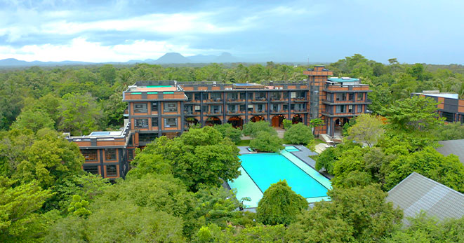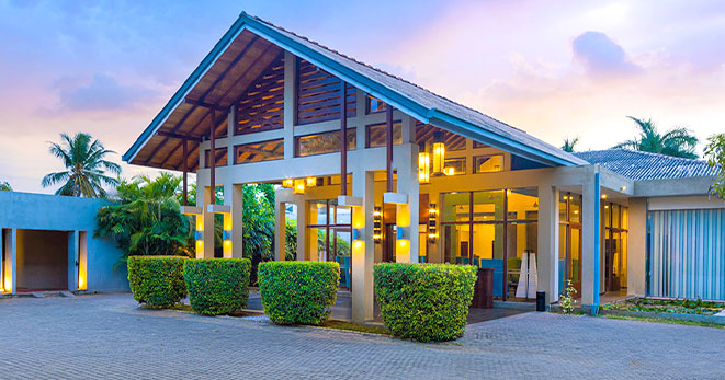 Una residenza costruita alla fine degli anni Sessanta e ristrutturata nel 2010 da un esperto specialista di interni di grande fama, Channa Daswatte, che ha scelto decorazioni in denim e un design retrò Anni ’70, ridando al Trinco Blu un forte carattere orientale, piacevole e originale.